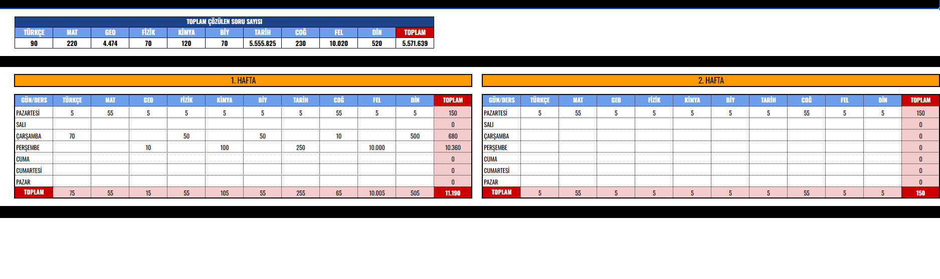 📅 Hazır TYT çalışma programı (düzenlenebilir)